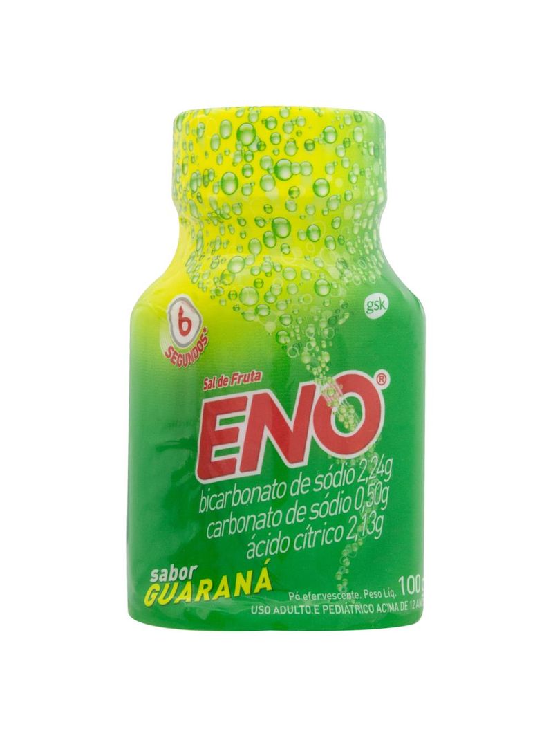 Sal de Fruta Eno é indicado para alívio de azia, má digestão e outros transtornos estomacais, tais como excesso de acidez do estômago e indigestão ácida. Os componentes do Sal de Fruta Eno, quando dissolvidos em água, reagem entre si, produzindo um sal de efeito antiácido, capaz de iniciar a redução da acidez do estômago em 6 segundos. Quando os sintomas ocorrerem, você deve dissolver 5g (conteúdo de 1 envelope ou 1 colher de chá) de Sal de Fruta Eno em um copo pequeno de água (200 ml) em temperatura ambiente, esperar completar a efervescência e beber de uma vez, podendo repetir o uso após 2 horas, se necessário. Você não deve ultrapassar a dose diária máxima recomendada, de 2 envelopes ou 2 colheres de chá deste medicamento a cada 24 horas. para esta dose, o período máximo de uso é de 14 dias. Siga corretamente o modo de usar. Em casos de dúvidas sobre este medicamento, procure orientação do farmacêutico. Não desaparecendo os sintomas, procure orientação de seu médico ou cirurgião-dentista.