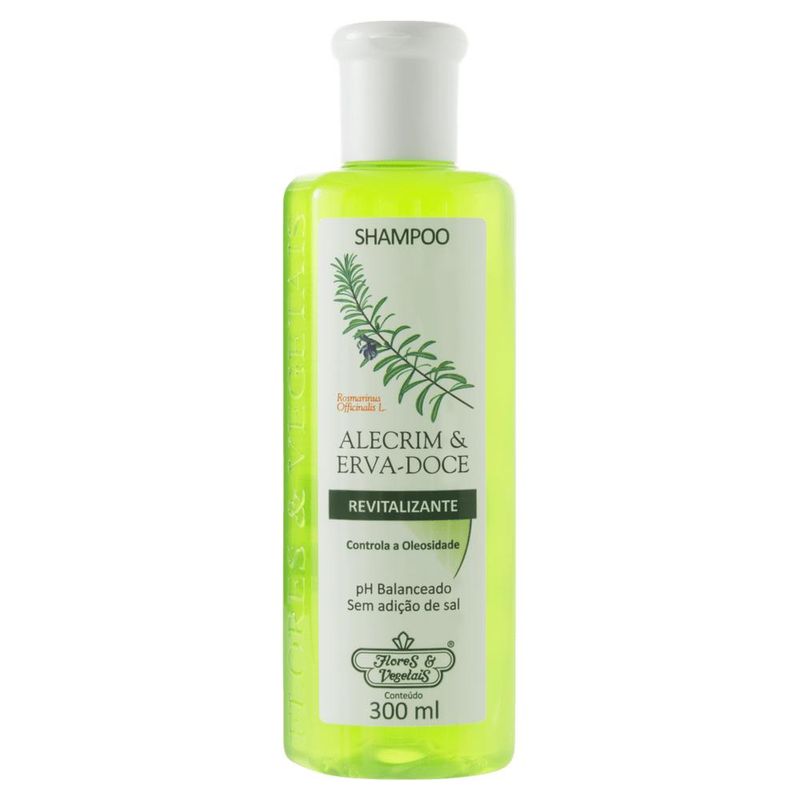 O Shampoo Alecrim & Erva-doce Flores & Vegetais foi elaborado com Extratos Vegetais de Alecrim e Erva-doce, cuja função é lavar profundamente os cabelos, prevenindo contra a oleosidade excessiva das raízes. Seu uso regular proporciona leveza, mantém os fios soltos e brilhantes, deixando os cabelos revitalizados com agradável sensação de limpeza. Produto Dermatologicamente Testado Não Testado em Animais.
