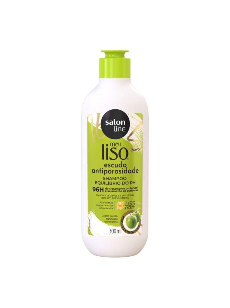 Shampoo Meu Liso Escudo Antiporosidade 300ml O Shampoo Equilíbrio do pH Meu Liso Escudo Antiporosidade garante limpeza hidratante da raiz às pontas, deixando os fios macios e sedosos, além de 96h de tratamento profundo e selamento das cutículas.