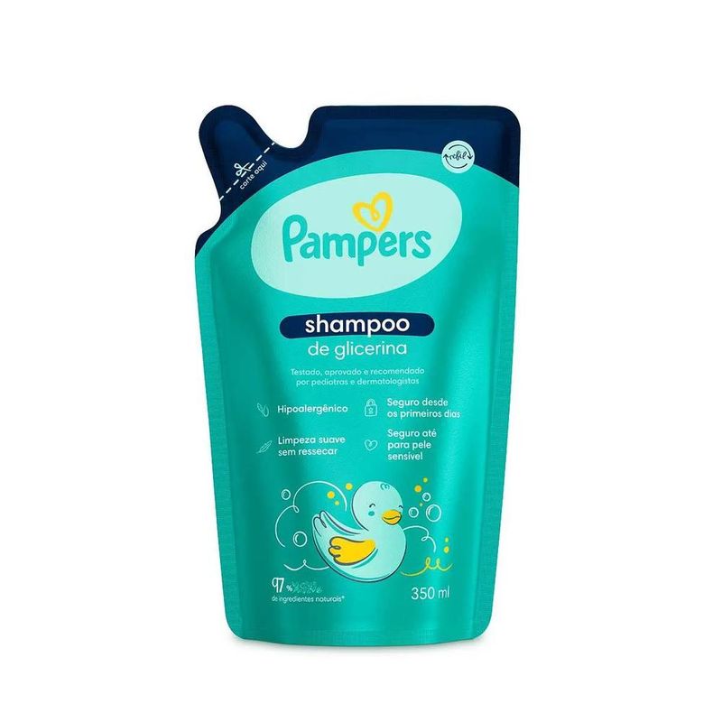 O que é o shampoo Pampers Glicerina?O shampoo Pampers Glicerina é ideal para uma limpeza suave e segura sem lágrimas e sem ressecar. Sua composição sem álcool etílico, fenoxietanol, parabenos e corantes é super tranquila até para couro cabeludo sensível e possui 97% de ingredientes naturais com pH ideal para o couro cabeludo do bebê.Testado, aprovado e recomendado por pediatras e dermatologistas, o shampoo Pampers Glicerina é hipoalergênico e conta com fórmula biodegradável, vegana e livre de crueldade animal.Para que serve o shampoo Pampers Glicerina?Seguro desde os primeiros dias, o shampoo Pampers Glicerina mantém os fios do neném macios e garante uma perfumação suave, segura para recém-nascidos.Benefícios e diferenciais do shampoo Pampers GlicerinaIdeal para uma limpeza suave e segura, sem ressecar.Composição sem álcool etílico, fenoxietanol, parabenos e corantes.Mantém os fios do neném macios.Testado, aprovado e recomendado por pediatras e dermatologistas.Seguro até para couro cabeludo sensível.Possui pH ideal para o couro cabeludo do bebê.Hipoalergênico.Seguro desde os primeiros dias.Perfumação suave, segura para recém-nascidos.97% de ingredientes naturais.Sem lágrimas.Fórmula biodegradável, vegana e livre de crueldade animal.Como usar o shampoo Pampers Glicerina?Coloque um pouco do shampoo em uma das mãos.Espalhe pelo cabelinho molhado do seu bebê durante o banho.Massageie suavemente.Enxágue em seguida com água.AdvertênciasEste produto foi formulado de maneira a minimizar possível surgimento de alergia.Deve ser aplicado por adulto ou sob sua supervisão.Não usar na pele irritada ou lesionada.Não usar se o couro cabeludo estiver ferido ou irritado.Em caso de irritação, suspender o uso e procurar um médico.Caso o produto entre em contato com os olhos, lavar com água corrente em abundância e procurar um médico. Mantenha fora do alcance das crianças.
