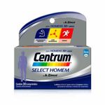 Centrum Homem Select é um multivitamínico, completo de A a Zinco, que contém uma combinação de cálcio e vitamina D e contribui para a manutenção normal dos ossos; vitaminas do complexo B, que ajudam no aproveitamento da energia dos alimentos; e vitaminas C e E, manganês e selênio, que ajudam a proteger as células da ação dos radicais livres.