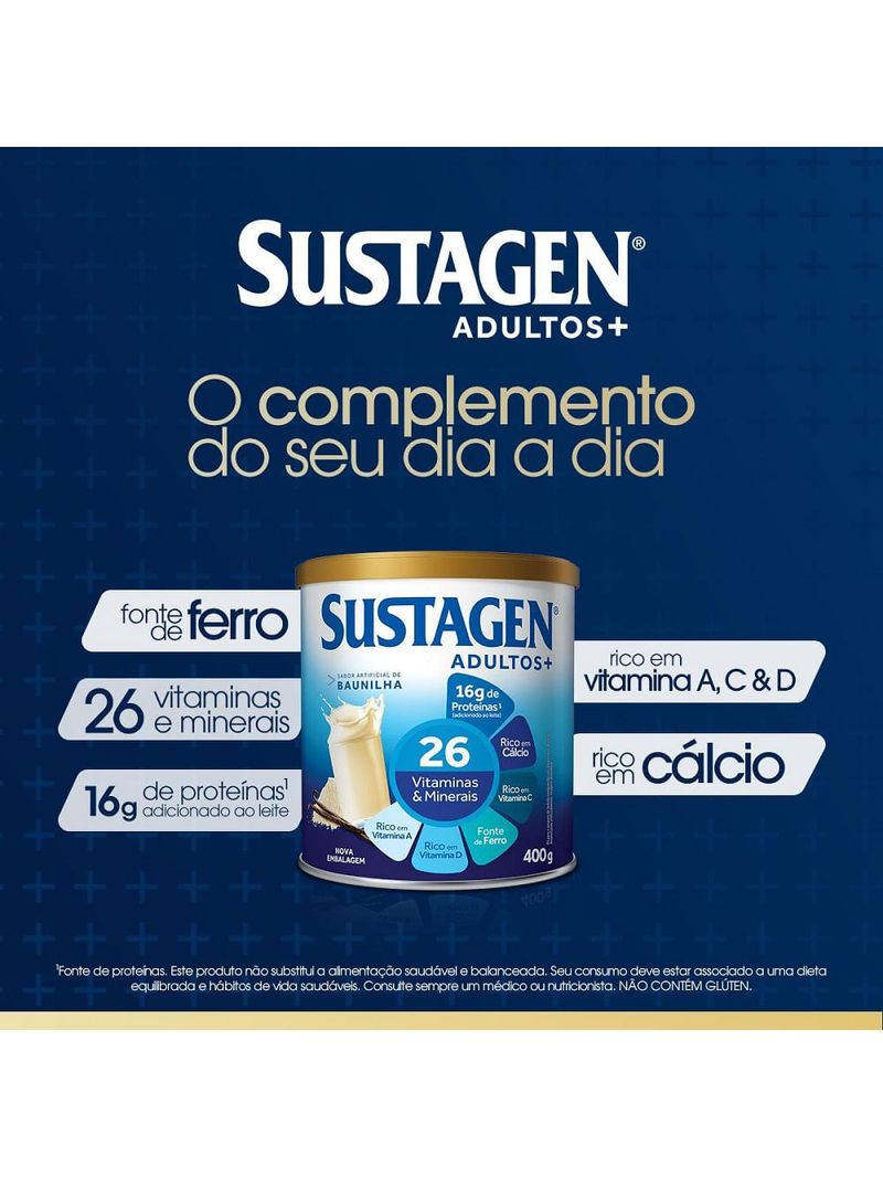 até 2x de R$ 36,49Sustagen Adultos+ Sabor Baunilha 400g é um suplemento nutricional completo, desenvolvido especialmente para adultos a partir dos 40 anos. Sua fórmula contém 26 vitaminas e minerais que auxiliam na manutenção da saúde óssea, na geração de energia e no fortalecimento do sistema imunológico. É uma solução prática e saborosa para complementar a alimentação e contribuir para uma vida mais ativa e equilibrada.
