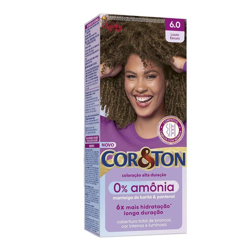 O que é a tintura Cor&Ton Niely? Cor&Ton da Niely é uma tintura com tecnologia 0% de amônia para maior duração. Tonalidade 6.0 Louro Escuro. Para que serve a tintura Cor&Ton Niely? Indicado para todos os tipos de cabelo e compatível mesmo com cabelos quimicamente tratados, a tintura Cor&Ton Niely oferece total cobertura de brancos com cor intensa e luminosa e um cabelo macio e nutrido com 6x mais hidratação, por conta da Manteiga de Karité e Pantenol, ativos que ainda garantem ação antirressecamento e brilho intenso. Benefícios e diferenciais da tintura Cor&Ton Niely Coloração com 0% de amônia. Total cobertura de brancos. Cor intensa e luminosa. Cabelo macio e nutrido. Coloração de longa duração. 6x mais hidratação. Possui tratamento com Manteiga de Karité e Pantenol. Efeito ultrahidratante, com ação antirressecamento e brilho intenso. Indicado para todos os tipos de cabelo. Compatível com cabelos quimicamente tratados. Como usar a tintura Cor&Ton Niely? Coloque as luvas. Despeje todo o conteúdo da bisnaga de Cor&Ton em uma vasilha de plástico com toda a Emulsão Reveladora. Com o auxílio de um pincel, misture bem até formar uma consistência homogênea. É recomendável esperar por um período de 15 dias entre a defrisagem (alisamento e relaxamento) ou permanente e coloração. Advertências Em caso de reação durante a aplicação como: Coceira, irritação, erupção cutânea ou sensação de ardência do couro cabeludo, enxágue imediatamente e suspenda o uso. Em caso de dificuldades para respirar, peça imediatamente assistência médica e entre em contato com o fabricante. Antes de refazer uma coloração, consulte um médico. Mantenha fora do alcance das crianças.