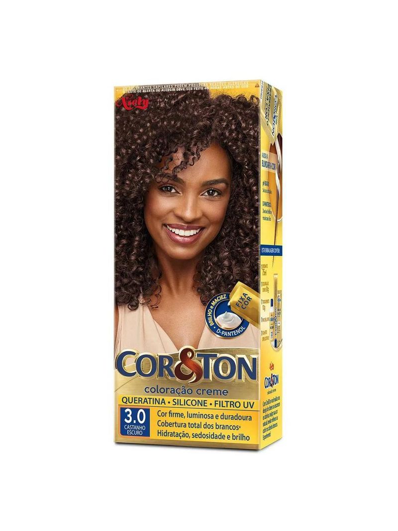 Com Cor&Ton você realiza seu desejo de clarear ou escurecer os cabelos, realçar sua cor natural, revelar reflexos ou cobrir os cabelos brancos. Experimente!Cobertura total dos brancos*Cor Intensa, vibrante e duradouraHidratação, sedosidade e brilhoBenefícios:Cores firmes e duradouras. Ph Baixo: sela as cutículas, melhora a textura e a maciez Recomendação de uso:Siga as instruções e precauções de uso no folheto contido no kit.