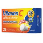 Vitaxon C é um suplemento alimentar de Vitamina C em comprimidos. Este medicamento é indicado como suplemento vitamínico auxiliar do sistema imunológico. O ácido ascórbico (vitamina C), componente ativo de Vitaxon C, atua no sistema imunológico, melhorando a resposta das células de defesa, principalmente, por seu papel regulador da atuação de leucócitos. A suplementação com vitamina C pode trazer benefício clínico para pessoas que apresentam carência desta vitamina, a qual pode ser decorrente de baixa ingestão, e para àquelas que apresentam a necessidade aumentada desta vitamina. Modo de usar: Uso oral. Ingerir 01 comprimido ao dia.