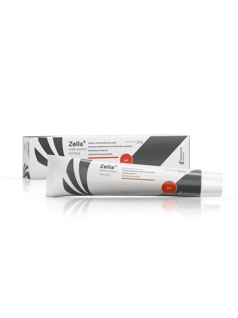 O que é e para que serve a Zella Gel 150mg/g? Zella é um gel facial de Ácido Azelaico 150mg/g indicado para o tratamento da acne e da rosácea papulopustulosa, uma doença inflamatória crônica da pele, semelhante à acne. Como usar a Zella Gel 150mg/g? Uso dermatológico. Lave o local da aplicação com água corrente ou, se necessário, com um agente de limpeza suave. Secar a pele antes de aplicar o medicamento. Aplique Zella® sobre a(s) área(s) afetada(s) duas vezes ao dia (de manhã e à noite), friccionando delicadamente. Zella® deve ser aplicado em pequena quantidade (aproximadamente 2,5cm = 0,5g de gel é suficiente para toda a área do rosto). Ingrediente Ativo Ácido Azelaico 150mg/g. Advertências e cuidados Zella® destina-se apenas ao uso dermatológico (na pele). Durante o uso de Zella® deve-se tomar cuidado para evitar contato com os olhos, a boca e outras membranas mucosas. No caso de contato acidental com os olhos, a boca e outras membranas mucosas, lavar a área afetada com bastante água. Se a irritação do olho persistir, o médico deve ser consultado. Lavar as mãos após cada aplicação do medicamento. O ácido benzoico, presente na fórmula de Zella®, é suavemente irritante à pele, aos olhos e às membranas mucosas. O propilenoglicol, também presente na fórmula de Zella®, pode causar irritação da pele. Quando Zella® é usado para o tratamento da rosácea papulopustulosa é aconselhável evitar o uso de agentes de limpeza alcoólicos, tinturas e adstringentes, abrasivos e agentes de peeling. Gravidez, amamentação e fertilidade: recomenda-se cautela no uso de Zella® em mulheres grávidas ou que estejam amamentando. Consulte seu médico. Não existem dados sobre o efeito de Zella® sobre a fertilidade humana. Este medicamento não deve ser utilizado por mulheres grávidas sem orientação médica ou do cirurgião- dentista. Uso em idosos: os estudos clínicos realizados com ácido azelaico não estabeleceram segurança e eficácia específicas para o tratamento na população de pacientes com idade acima de 65 anos. Uso em pacientes com insuficiência hepática e renal: não há estudos direcionados em pacientes com insuficiência hepática e renal. Consulte seu médico. Interações medicamentosas: não há nenhum estudo de interação medicamentosa.